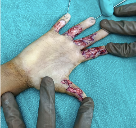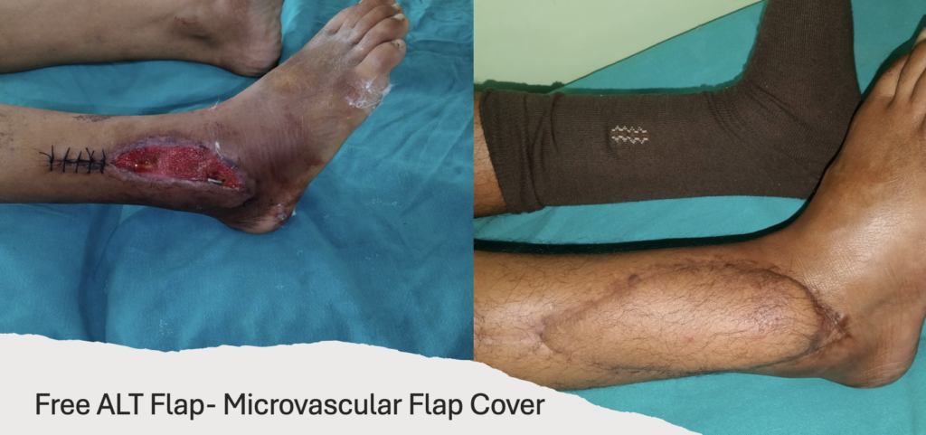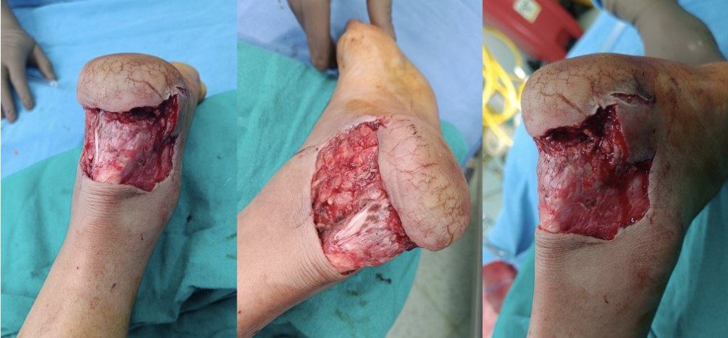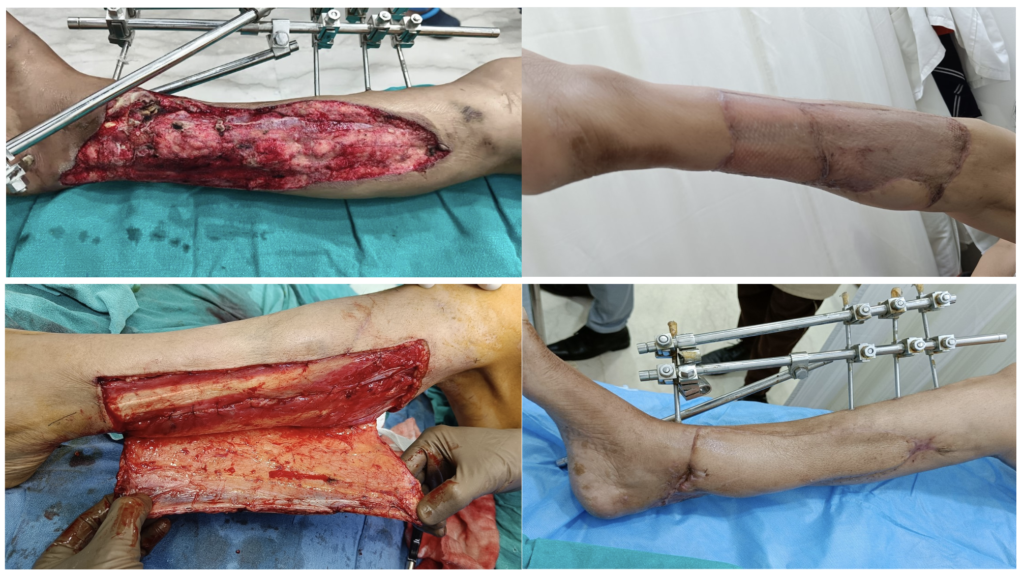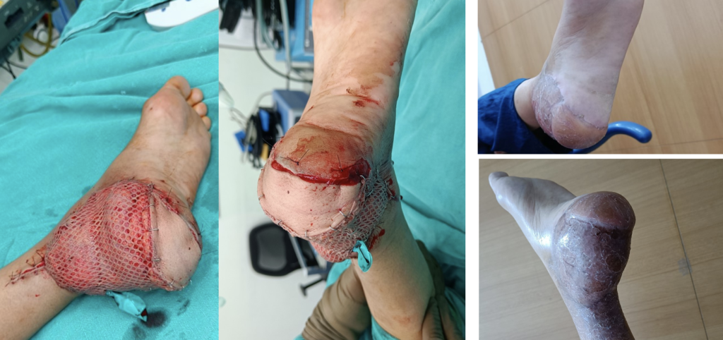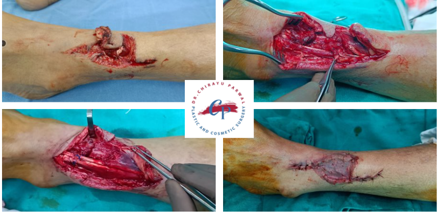 Multiple tendon repair (leg)and skin graft