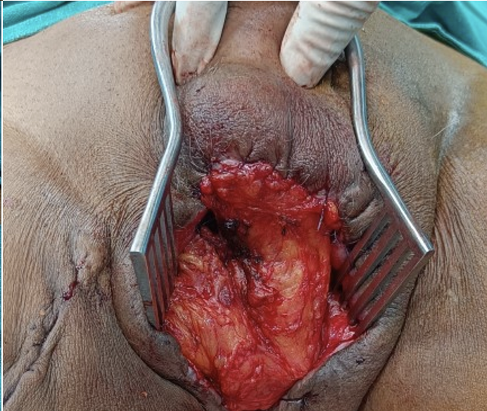 Deep perineal defect with uretherocutaneous fistula